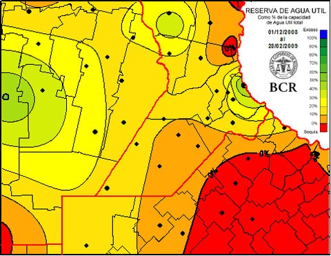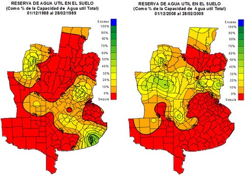 La Niña 1998/99 actuó en su forma más severa sobre el 62% de la región núcleo. En cambio, en la 2008/09 se ensañó con en el NE de Buenos Aires, afectando en su mayor grado a un 37% de la zona. En ese evento, la anomalía en los alrededores de Rosario casi no se sintió, y sin embargo, a pocos kilómetros, desde Maciel hacia el norte hubo un foco de acción reducida, pero también de alta intensidad.