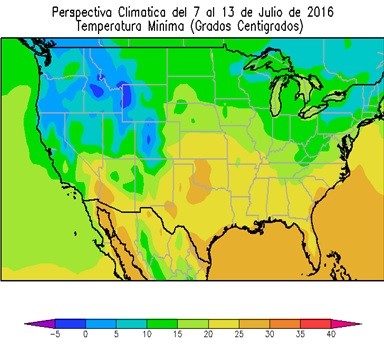 Después de las lluvias, arribarán los vientos del norte, provocando un marcado descenso térmico en el norte del área agrícola norteamericana, mientras que el sur observará valores normales a superiores a lo normal. El norte del área triguera, el norte y el sur del cinturón maicero y el nordeste de la Región del Sudeste, registrarán temperaturas mínimas, superiores a 10ºC, con focos con valores inferiores.