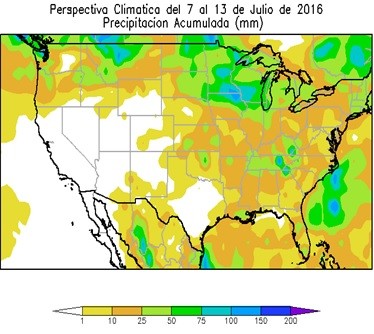 La perspectiva comenzará con precipitaciones de diversa intensidad que cubrirán la mayor parte del área agrícola Norteamérica, con valores abundantes sobe el norte de su extensión, mientras que la mayor parte del centro y el sur recibirán aportes moderados, con algunos focos de registros mayores. El norte del área triguera, la mayor parte del cinturón maicero, la mayor parte del Delta y el norte y el centro de la Región del Sudeste, observará precipitaciones moderadas a muy abundantes (10 a 75 mm), con focos de tormenta con precipitaciones superiores a 100 mm.