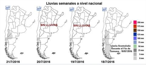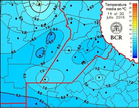 Tras la semana sin lluvias, que fue caracterizada por el intenso frío, regresaría el tiempo inestable. Las temperaturas presentaron un fuerte descenso, con valores entre 0 y 3ºC bajo cero, por la entrada de la ola polar. Valores muy bajos de temperaturas promedios y heladas generalizadas, aunque de moderada intensidad, se registraron durante gran parte de la semana. La semana comenzará con lluvias y tormentas aisladas. Durante las jornadas del lunes 25 y martes 26 los acumulados estarían en el orden de los 10 a 15 mm.
