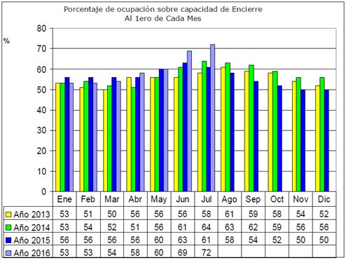 Gráfico 1: Porcentaje de ocupación sobre capacidad de encierre
