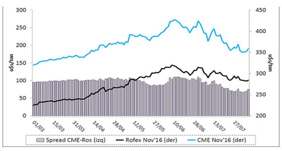 Precios futuros Noviembre 2016. En Rosario y en Chicago. (Reuters)