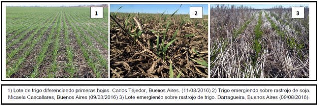 En paralelo, sobre la franja central los cuadros ya se encuentran desarrollando los primeros macollos, mientras que los últimos lotes sembrados aún diferencian de cuatro a seis hojas (V4-V6). La condición de humedad es óptima, relevándose incluso algunos excesos que han provocado mermas en el stand de plantas en ambientes bajos sobre las regiones Sur de Córdoba, Centro-Norte de Santa Fe y el este de Entre Ríos.