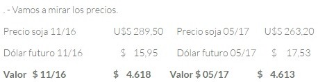 Claramente la soja está en un precio inverso en dólares y aplanado en pesos. Conclusión hay que vender, y colocarse en Lebac. Para la próxima campaña estos precios están muy bien para los que están a menos de 300 kilómetros de puerto, tienen rindes superiores a los 30 quintales y son dueños de la tierra.