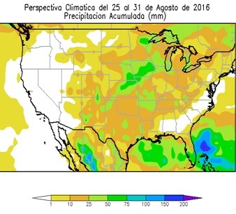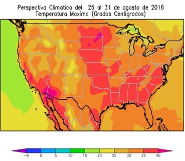 Perspectiva Agroclimática para los EE.UU. del 25 al 31 de Agosto: Precipitaciones irregulares y moderado descenso térmico, seguidos por fuertes calores
