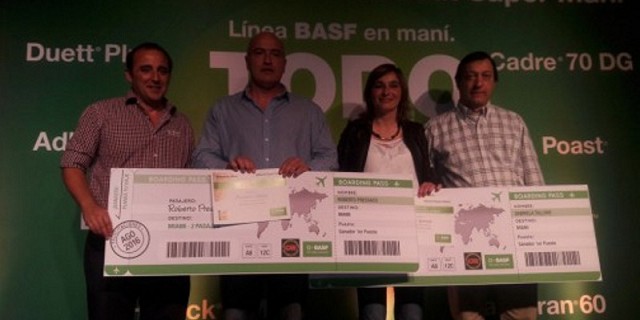Los ganadores fueron Roberto Pressacco y Gabriela Tallone, quienes alcanzaron los 6701 kg/ha. El segundo premio correspondió a Juan Bonvillani y Sebastian Rosso con 6642 kg/ha. Por último, la tercera posición fue para Carlos Sitto y Gustavo Rinaudo, con 5887 kg/ha. El Ing. Agr. Juan Pérez Brea, Gerente de Cultivo de Maní de BASF, afirmó sobre estos resultados: “Un año más, los resultados de rendimiento obtenidos por los productores ganadores han superado a los del año pasado. Esto se debe al manejo de los productores en conjunto con la utilización de nuestra línea de fungicidas en la secuencia de aplicaciones”.