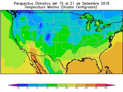 El centro y el sur del área triguera, el sur del cinturón maicero, el norte del Delta y el norte de la Región del Sudeste, registrarán temperaturas mínimas entre 10 y 15ºC. La mayor parte de Texas, la mayor parte del Delta y la mayor parte de la Región del Sudeste, registrarán temperaturas mínimas entre 15 y 20°C.