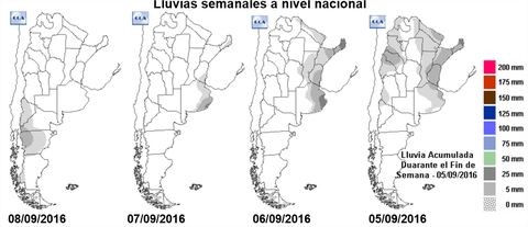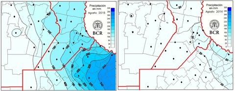 También siguen lotes en dudas y siembras tardías que pasarán a soja. Las lluvias de la segunda quincena serán fundamentales para que se concrete el millón de ha que se esperan. Agosto 2016 cerró con 50 mm al noreste bonaerense y casi nulas precipitaciones en el resto de la región, quedando por debajo de los milímetros normales para esta época del año (30 mm). Los lotes están requiriendo lluvias de aproximadamente 20 mm para recuperar la humedad superficial. Según los pronósticos, la inestabilidad se hará presente recién el próximo lunes y martes, que junto al incremento de la temperatura, mejorarían las condiciones para la apertura de la campaña gruesa.