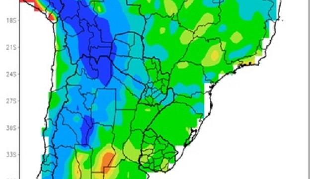 El sur del área agrícola brasileña, la Región Oriental del Paraguay, el centro y el este de la Región Pampeana, la Mesopotamia y la República Oriental del Uruguay, donde la acción de “La Niña” es negativa, continuarán recibiendo la influencia positiva del Océano Atlántico, por lo que las precipitaciones alcanzarán valores desde levemente inferiores hasta levemente superiores a lo normal.