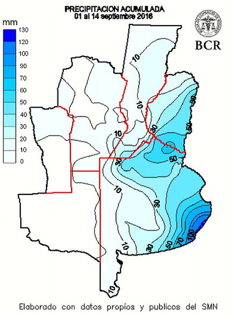 los 30 mm. La franja central, que abarca Santa Fe y el centro de Buenos Aires,