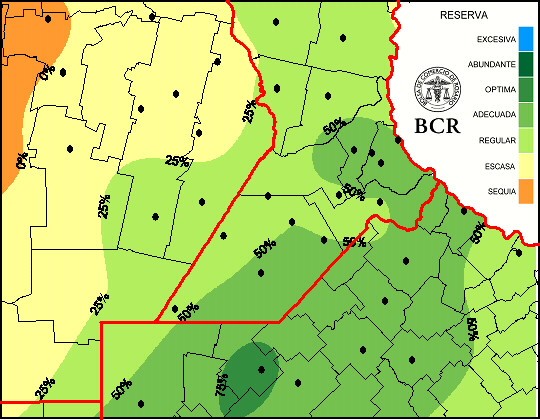 Las lluvias llegaron justo a tiempo, cuando la fecha de fin de siembra del maíz temprano se venía encima y el deterioro del trigo se extendía por toda la zona. Esta vez, las precipitaciones fueron generalizadas y parejas. La marca más destacada se registró en General Pinto con 66,44 mm. Se destaca también un núcleo de agua importante en los alrededores de Pujato. El resto de la región presentó acumulados de 20 a 40 mm. El oeste cordobés fue la zona menos beneficiada con las lluvias. De todas maneras, las reservas edáficas mejoraron en toda la región pampeana. Para los próximos días se prevén nuevas lluvias en la mayor parte de la región pampeana. Los registros serán menores, pero servirán para seguir sumando.
