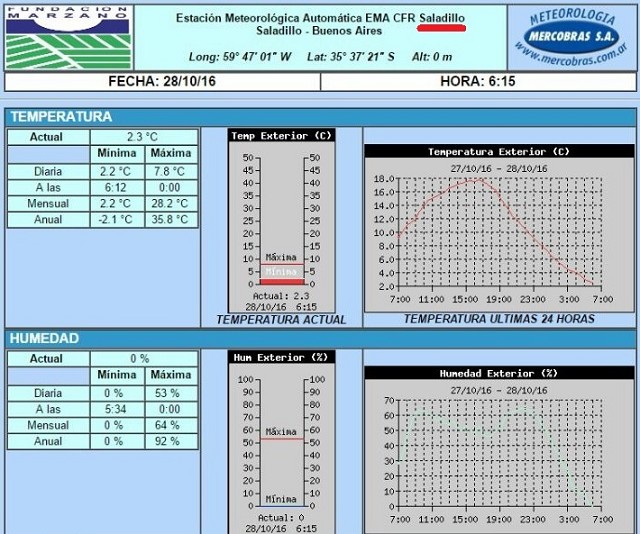 En Saladillo, el termómetro a las 06:15 hs marcaba 2,3 ºC