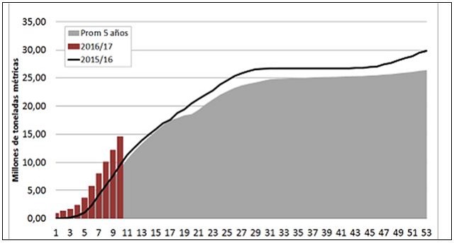 El acumulado desde los comienzos de la campaña se aproxima a 20 millones de toneladas. Sin dudas, un récord histórico.