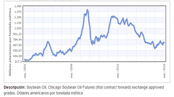 Ambos cuadros, tanto el del precio del petróleo como el del aceite de soja, cubren el mismo período, desde 2001 al 2006. Y el parecido es más que llamativo.