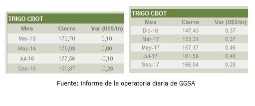 En la última operatoria del 2015, el TRIGO en su contrato de marzo de 2016 ajustaba en u$s 172,70. Éste lunes por la tarde, el cereal -para el mismo mes de 2017- ajustaba en u$s 153,31.
