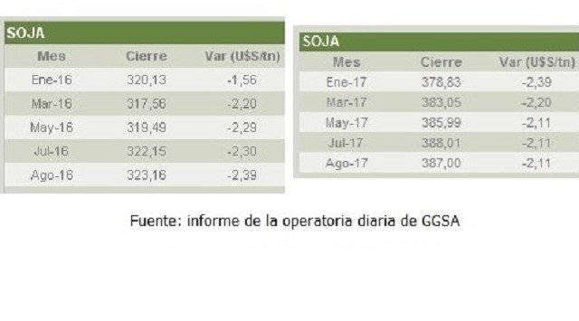 En la última operatoria del 2015, la SOJA en su contrato de enero de 2016 ajustaba en u$s 320,13. Éste lunes por la tarde, la oleaginosa de principios de 2017 ajustaba en u$s 378,83.