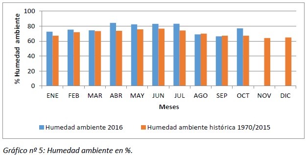 La humedad ambiente durante prácticamente todo el año fue mayor a la media.