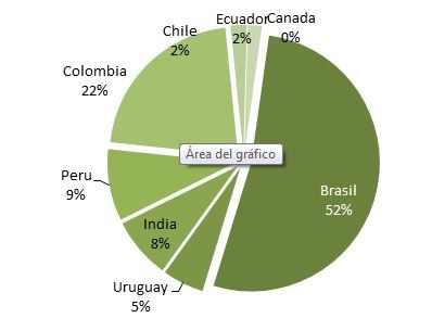 Gráfico 2: Destinos de exportación de cebada cervecera, como porcentaje del total. Fuente: Globaltecnos en base a AFIP