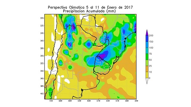 PERSPECTIVA AGROCLIMÁTICA DEL 5 AL 11 DE ENERO DE 2017: PRECIPITACIONES SOBRE GRAN PARTE DEL ÁREA AGRÍCOLA, A EXCEPCIÓN DE SU PORCIÓN SUDOESTE, ACOMPAÑADAS POR UN MARCADO DESCENSO TÉRMICO, FINALIZANDO CON EL RETORNO DEL CALOR