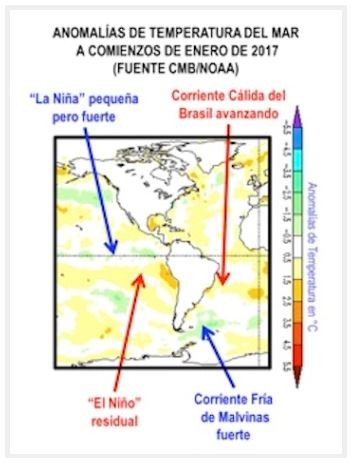 Aunque la disipación de “La Niña” eliminará un factor perturbador, la acción residual de “El Niño” 2015/2016 y la puja entre la circulación polar y la circulación tropical continuarán determinando un escenario climático muy perturbado.