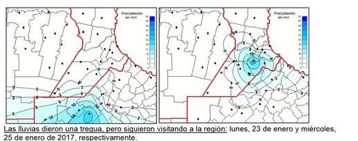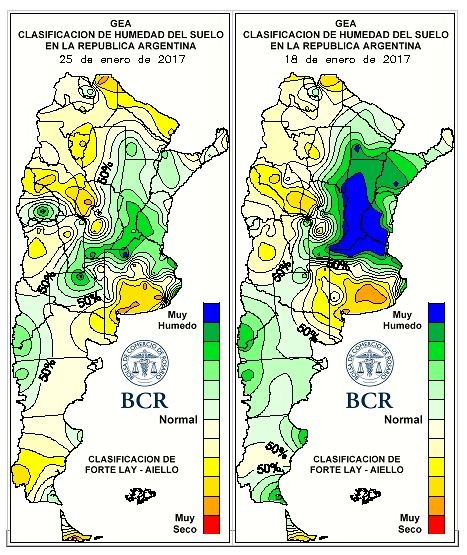 Las lluvias dieron un respiro en esta semana, llovió en pocas zonas y los milimetrajes fueron mucho más moderados y acordes a lo que se suele esperar en enero. Esto colaboró en que los aplicadores vuelvan al ruedo en buena parte de la región. Sin embargo, hay muchas zonas que siguen bajo agua, y se registran severos niveles de pérdidas de área por anegamiento. Estos niveles de descuento de superficie cultivada no habían sido registrados con anterioridad en el mes de enero. Sin embargo el 10% del área en condiciones regulares a malas contrasta con el 45% de la soja de primera que se califica como muy buena. Los primeros lotes, los que fueron sembrados más temprano y representan a un 21% del área sembrada, están en plena fructificación (R4). El resto de los lotes (60%) se centra en la plena floración e inicios de fructificación (R2-R3). Hay presencia de isoca medidora (Rachiplusia nu) en niveles moderados y está comenzando a aparecer otro pico de oruga bolillera. Se destacan las enfermedades de fin de ciclo como Septoria glycines y Cercospora kikuchii. Por otro lado, las malezas no dejaron de ponerle presión a la campaña. La imposibilidad de entrar al lote ante la falta de piso demoraron las aplicaciones terrestres. En muchos casos no hubo más posibilidades que recurrir a las aplicaciones aéreas, lo cual siguió sumando costos a esta difícil campaña.