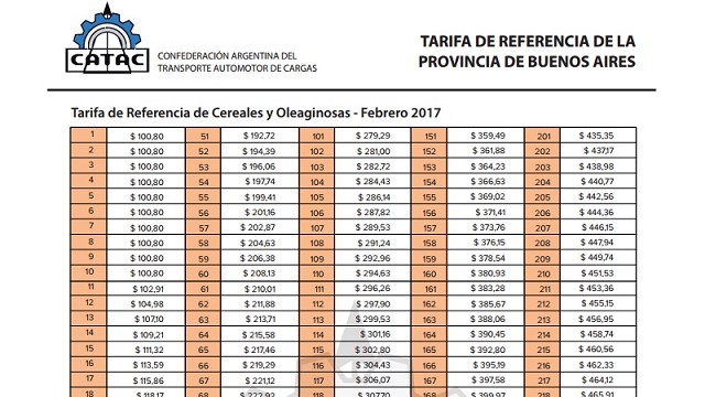 Se firmó el acta de acuerdo con la nueva "Tarifa de Referencia de Cereales y Oleaginosas - Febrero 2017" en la ciudad de La Plata. A continuación el detalle
