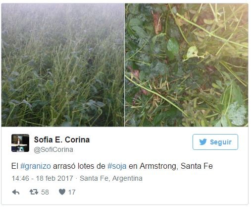 En muchos lugares hubo más de 100 milímetros y caída de granizo que destruyó cultivos. Así se reflejó en la red Twitter.