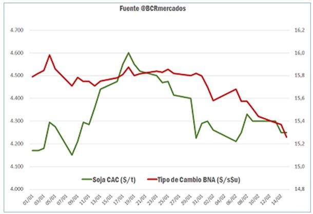 El cuadro siguiente nos muestra cómo, desde el inicio del año, el precio de la soja (local) se comporta de forma bastante aproximada a la evolución del tipo de cambio.