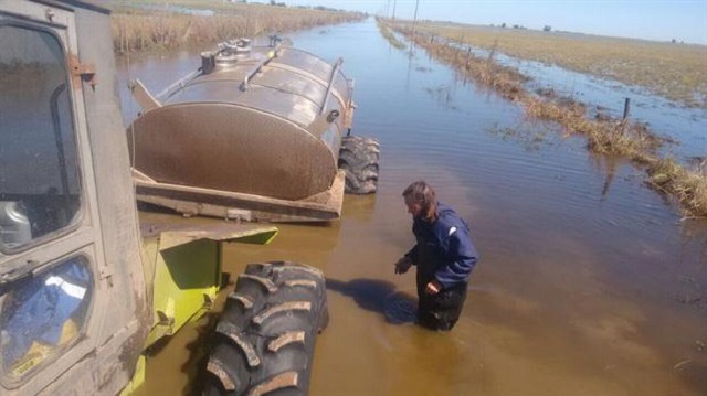 Por los anegamientos y el agua que llega de otras regiones, en especial del sur de Córdoba, los caminos rurales están intransitables. Muchos están tratando de trasladar la producción con tractores, aunque a veces los tanques de leche se quedan en medio del camino.