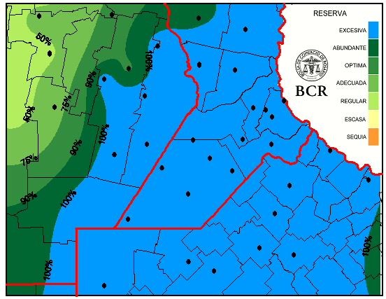 Se espera que las áreas del oeste de Córdoba y el centro-sur de Santa Fe sean los primeras en retomar la colecta, por las menores lluvias que recibieron. Hacia el noreste, los acumulados son cuantiosos. Hubo registros que superaron los 150 mm, destacándose los 320 mm en la localidad de Junín. Esta área ha quedado comprometida y todavía deberá aguardar unos días más para entrar a cosechar. Irigoyen recibió 146 mm y Monte Buey 117, mientras que en el resto del área se registraron valores entre 20 y 80 mm.