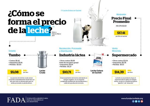 En la leche, los costos son del 81,2% sobre lo que se añade un peso