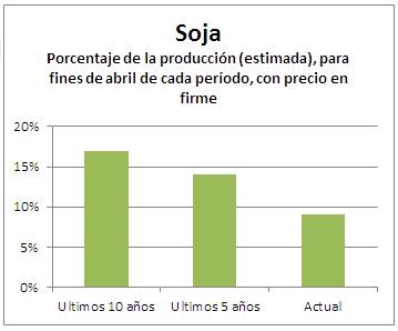 La proporción de la producción ya comprada, tal como dijimos, llegaría al 36%. Es un coeficiente mucho menor al del promedio de los últimos 10 años. Algo similar ocurre con las operaciones con precio en firme.