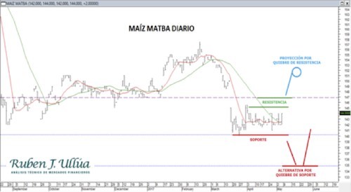 El cereal recupera hacia niveles de 144 dólares en las últimas sesiones. De sostenerse los precios por encima del mínimo de 140 dólares, podremos estar expectantes de nuevas recuperaciones, buscando regresar hacia la zona de 145-147 dólares, área que previamente había actuado como soporte y ahora es principal resistencia del contrato julio/17.