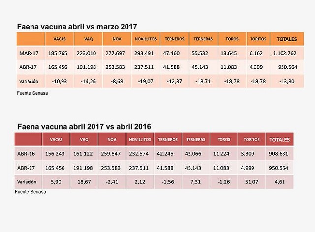 En cuanto a la comparación respecto de abril del año pasado, hay que destacar el fuerte incremento en vaquillonas y en terneras lo que da cuenta del menor interés por la retenciones de vientres pero también que se siguen vaciando los feedlots.
