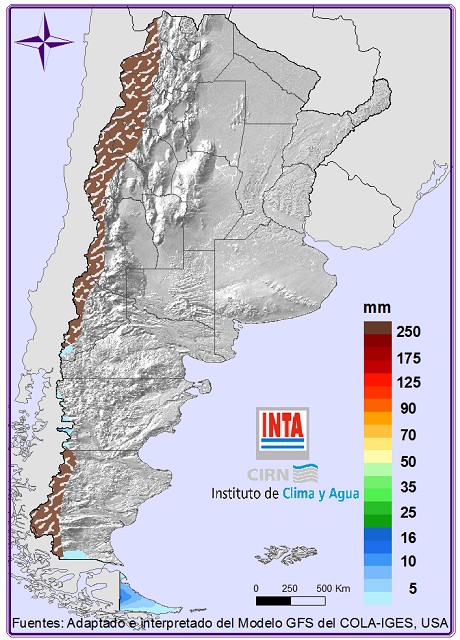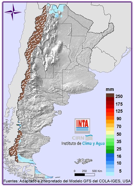 Sobre la Patagonia continuaría el tiempo ventoso con cielos nublados y probabilidad de lluvias sobre área cordilleranas y extremo sur.