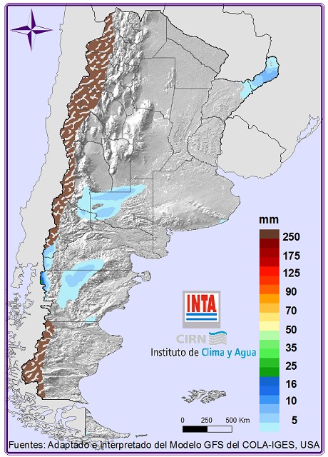 En el resto del centro y norte del país buenas condiciones meteorológicas. Ambiente frío a fresco por la tarde, se podrían registrar temperaturas inferiores a los 5°C en el sur de Cuyo y sur de la región Pampeana y heladas aisladas.