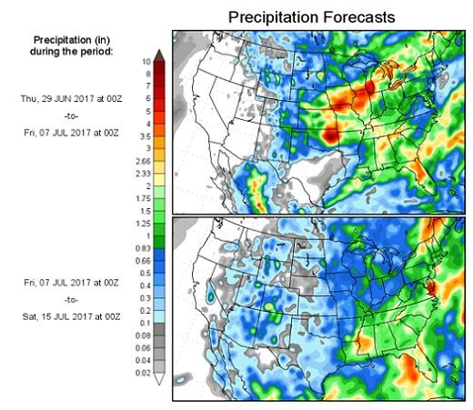 La atmósfera comenzó a comportarse adecuadamente en el cordón maicero de Estado Unidos. El maíz se encuentra ingresando a uno de sus periodos más delicados en la generación de rendimiento: la etapa de floración femenina o silking. Esta fase es particularmente muy sensible tanto al déficit de humedad como a los calores extremos, por lo tanto los pronósticos cobran relevancia en el movimiento de los precios.