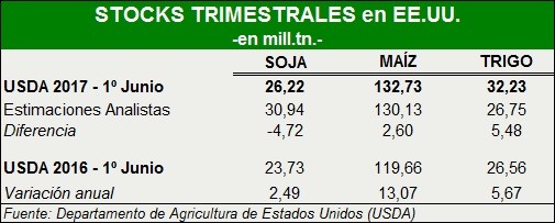 En cuanto al trigo, en promedio, el mercado, esperaba un stock final de 30,94 mill./tn. pero el reporte sorprendió a los analistas al anunciar 32,22 mill./tn.>