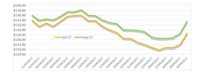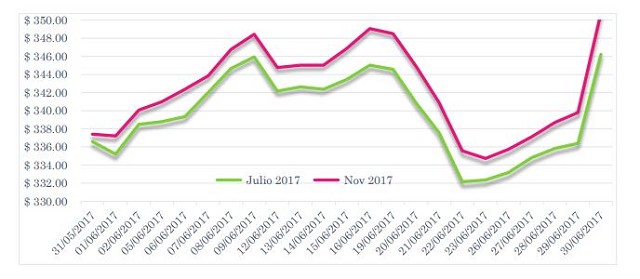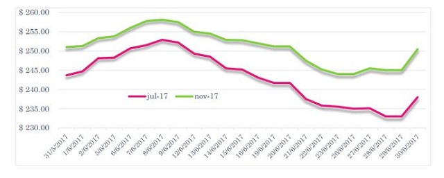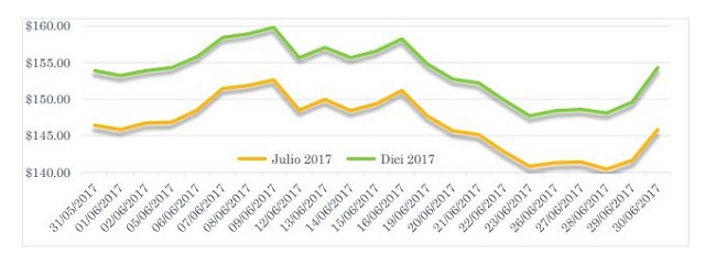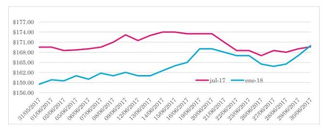 Por el lado de Argentina la cotización de la posición julio cerró con bajas del 2.5% y enero de 2018 con subas del 3.7%. Las variaciones mensuales fueron positivas; para julio un 1.1% y para enero de un 7,3%.