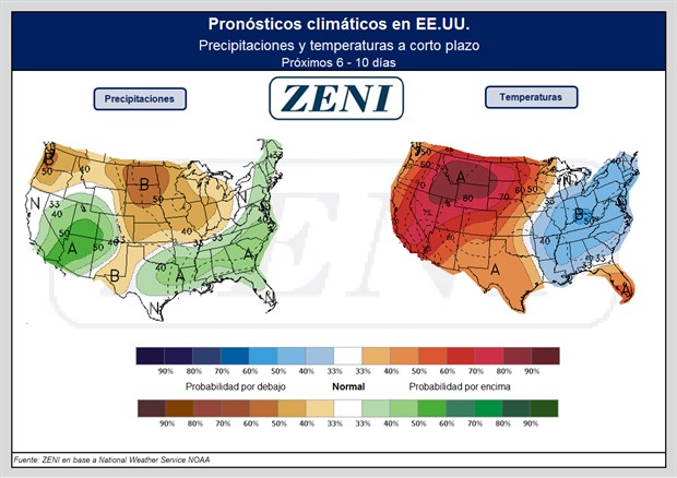 climáticos para el Medio Oeste y Planicies. Para los siguientes 6-10 (días) se