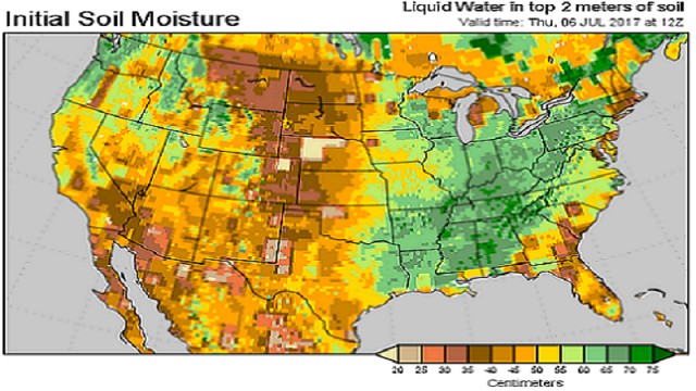 En el caso del área triguera, temperaturas cercanas a los 40 °C pone en jaque al cereal de primavera (así como también a los maíces) sembrados en Dakota. Como se aprecia en el mapa de reservas, un 80% del área de Montana se encuentra bajo condiciones de sequía, un 68% en Dakota del Sur, 54% en Dakota del Norte y 51% en Nebraska.