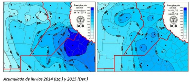 - El 2015 dejó unos 300 mm extras por sobre los valores promedios. La región recibió una media de 1.200 a 1.300 mm anuales.
