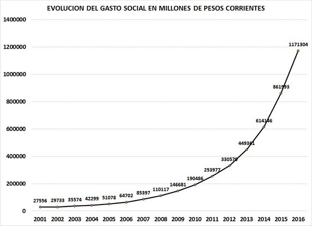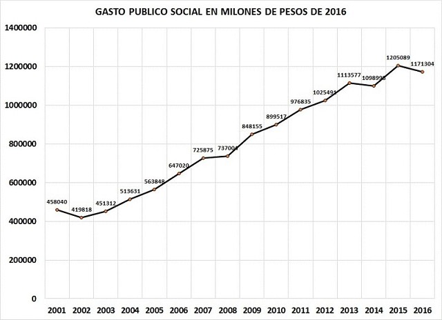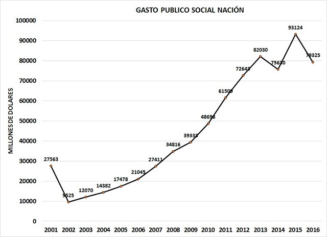 gasto social total pasó de U$S 27.543 millones en 2001 a U$S 79.325 millones en
