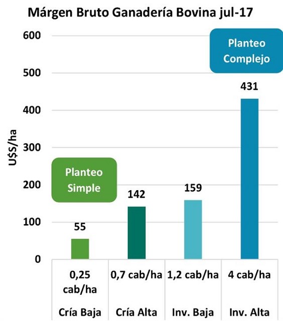 cabezas por hectárea, en un modelo de "invernada alta" el margen asciende a 431