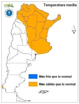 Para esta semana se esperan temperaturas medias por debajo de las normales en la mayor parte de Argentina. En la zona norte del país, se prevé una leve disminución de las temperaturas mínimas y máximas al menos hasta el sábado, donde comienza una irrupción de aire cálido. La zona centro, se mantendrá con temperaturas similares o menores a las actuales al menos hasta el domingo. Finalmente, en la zona sur las temperaturas mínimas irán creciendo conforme avance la semana.