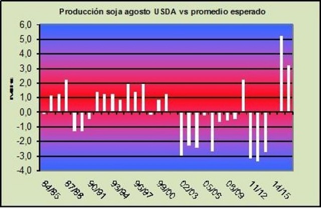 En este sentido, las proyecciones de agosto tienen la particularidad de ser las primeras en que los números de productividad se establecen en función de encuestas a los farmers, a diferencia de las previsiones anteriores (período mayo-julio) que se basan en modelos estadísticos.