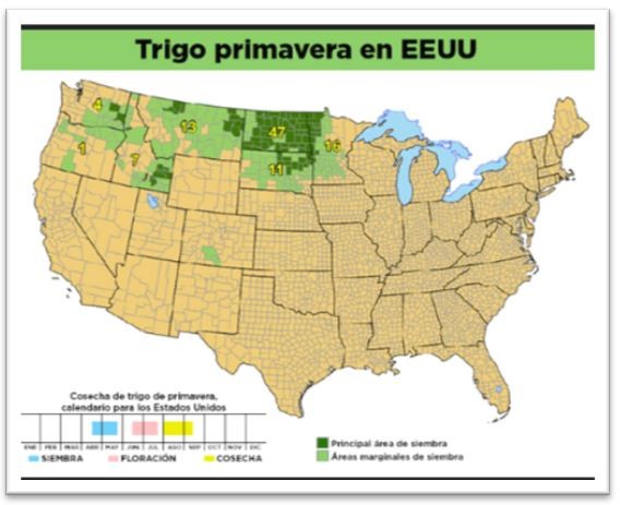 Como se advierte en el mapa, los Estados de Dakota del Norte y del Sur son los más importantes productores de trigo de primavera. Y justamente estos Estados han sido los más afectados por la sequía.