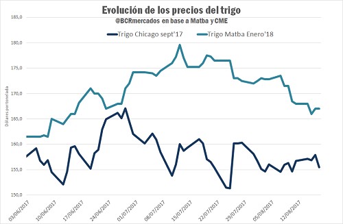 La racha bajista del cereal de invierno no deja ningún mercado afuera. En Chicago, Kansas y Minneapolis los precios del trigo están siendo presionados por la generosa cosecha que se espera en Rusia y el precio FOB del Mar Negro que se ofrece fuertemente por debajo del trigo americano. Por lo tanto, Egipto dirige sus compras al mejor postor desalentando las exportaciones en Estados Unidos. Esta semana licitó 295 mil toneladas de trigo ruso y 60 mil de trigo ucraniano. Bajo este contexto, en el mercado de Chicago el trigo se hundió 9 dólares por tonelada en 7 días hasta tocar los u$s 152/t.