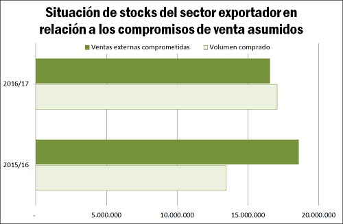 Al mismo tiempo, el sector ya ha comprado algo más de 17 millones de toneladas en la campaña actual, por lo que tiene el stock suficiente para cumplir con el 100% de sus compromisos. Ello puede restarle incentivos para mejorar su disposición a pagar por el grano en el mercado doméstico. Como referencia, a esta altura del año pasado los compromisos de 18,5 Mt se oponían a compras por 13,5 Mt, por lo que debían salir a conseguir 5 millones de toneladas, dando sostén a los precios.