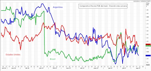 La actividad se concentró en el segmento de las entregas disponibles y contractuales, aunque también atrajo interés el ofrecimiento de los exportadores de pago contra entrega diferida al mes de octubre. Para lo que es maíz de la próxima cosecha 2017/18 el volumen de negocios fue mucho más escueto que en semanas anteriores.
